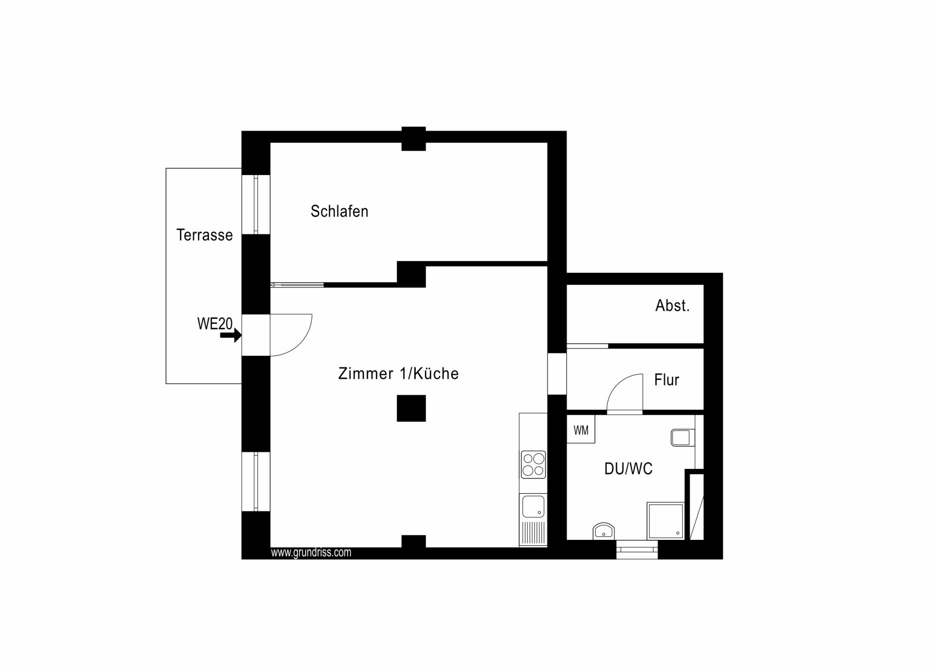 Der offene Wohnbereich bietet viel Platz für Ihre persönlichen Möbel und Gestaltungsideen. Hier können Sie nach einem langen Tag entspannen und die Zeit genießen. Das angrenzende Schlafzimmer ist ideal für eine ruhige Nachtruhe und lässt sich wunderbar zu einem persönlichen Wohlfühlort umgestalten.