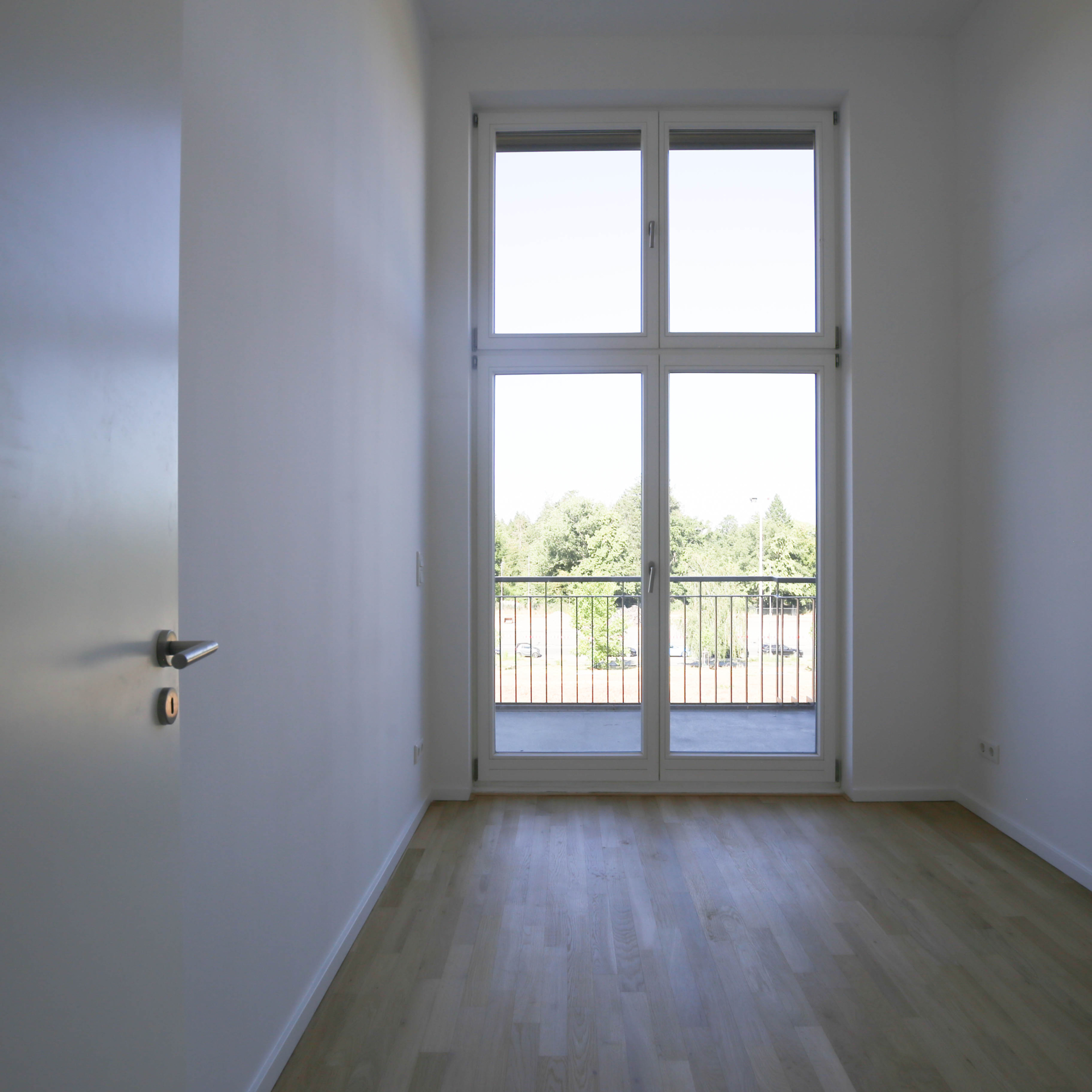 Jede Wohnung bietet als privaten Rückzugsort im Freien entweder eine ebenerdige Terrasse, einen geräumigen Balkon oder französische Balkone, die jeweils den Blick in die Grünanlagen freigeben.