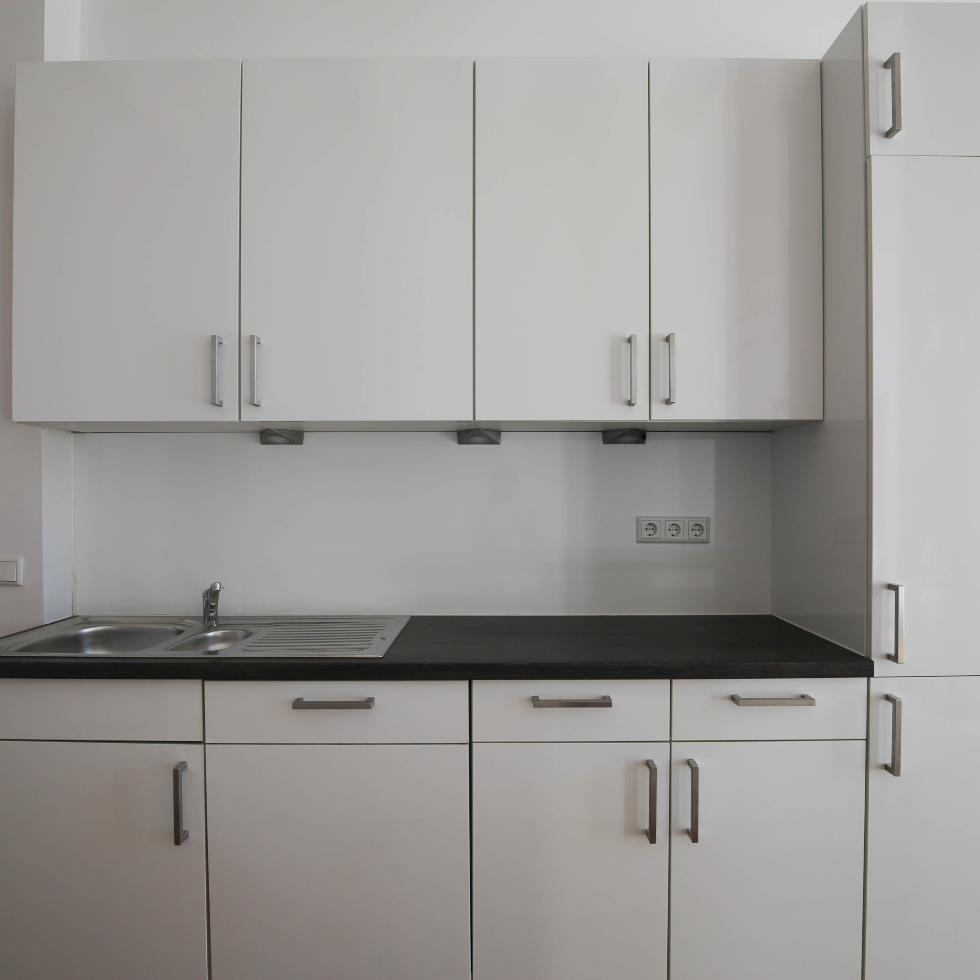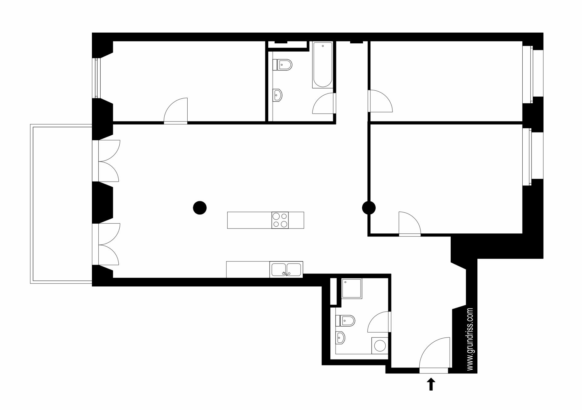 Die offenen Wohn- und Essbereiche sind jeweils mit einer modernen Einbauküche ausgestattet. In den geräumigen Bädern, teilweise mit Badewanne, setzen große Fliesen, verchromte Armaturen und Deckenspots stilvolle Designakzente.