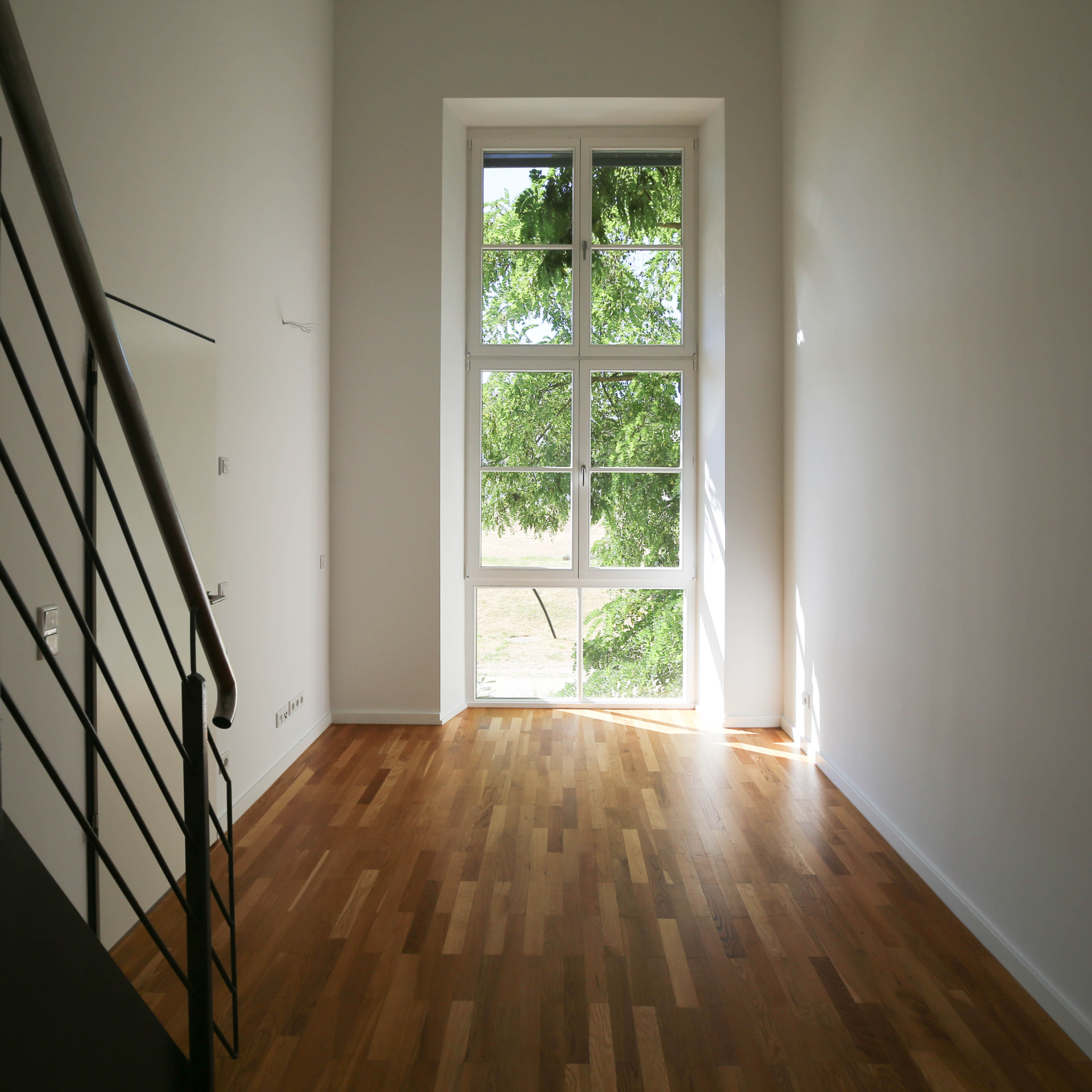 Lichte hohe Decken sorgen zusammen mit bodentiefen Fensterfronten für ein weitläufiges und helles Raumgefühl. Hochwertige Parkettböden und Fußbodenheizungen schaffen eine angenehme Wohnatmosphäre und ein optimales Raumklima.