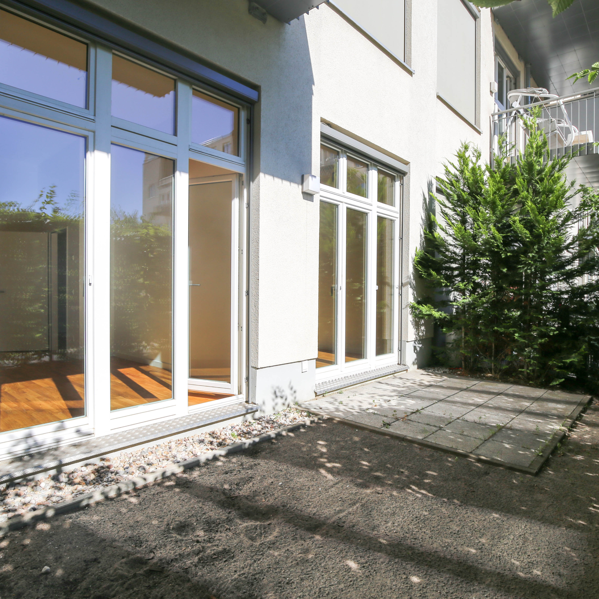 Die Treppenhäuser sind hell und funktional gestaltet und jeweils mit Fahrstühlen ausgestattet. Zudem stehen Tiefgaragen- sowie Außenstellplätze zur Verfügung.