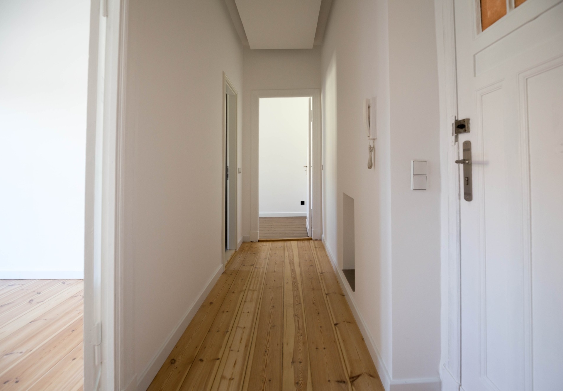"Willkommen im Herzen von Prenzlauer Berg – in einem Refugium, das Altbau-Charme und zeitgemäßen Komfort perfekt miteinander vereint. Die sanierte 1-Zimmer-Wohnung liegt im Vorderhaus eines stilvollen Altbaus von 1904 in unmittelbarer Nähe des Helmholtzkiez. Die apricotfarbene Fassade mit hellgrauen Elementen im Stil der Spätgründerzeit setzt einen markanten Akzent und verleiht dem Gebäude seine besondere Ausstrahlung. Schon beim Betreten des repräsentativen Eingangsbereichs spürt man den Charme der Berliner Altbaukultur – und dieser setzt sich in der Wohnung, die im Hochparterre nahtlos fort.