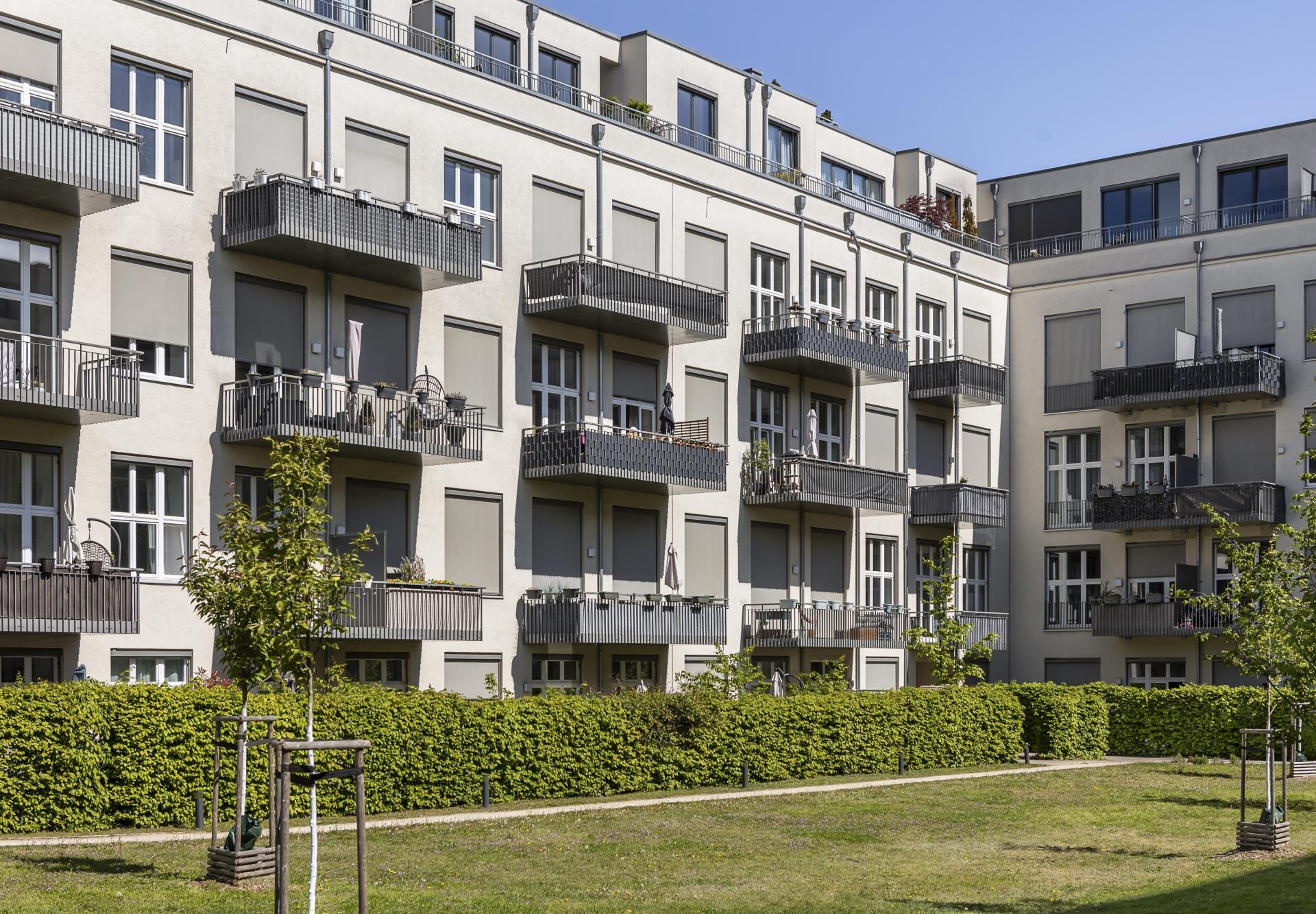 Die Treppenhäuser sind hell und funktional gestaltet und jeweils mit Fahrstühlen ausgestattet. Zudem stehen Tiefgaragen- sowie Außenstellplätze zur Verfügung.