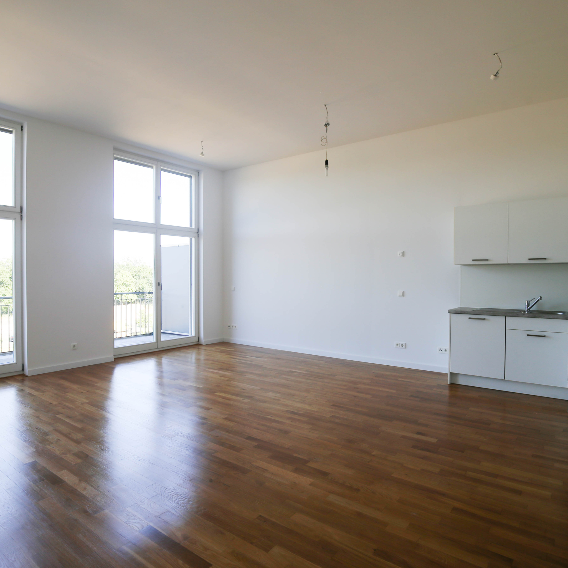 Diese großzügige 2-Zimmer-Wohnung erstreckt sich über ca. 81?m² und bietet viel Raum zum Wohlfühlen. Ein besonderes Highlight ist der direkte Zugang vom Wohn- und Schlafzimmer auf den großzügigen Balkon mit freiem Blick auf den "Platz des 4. Juli" – an dem in Kürze eine weitläufige Grünfläche entstehen wird.