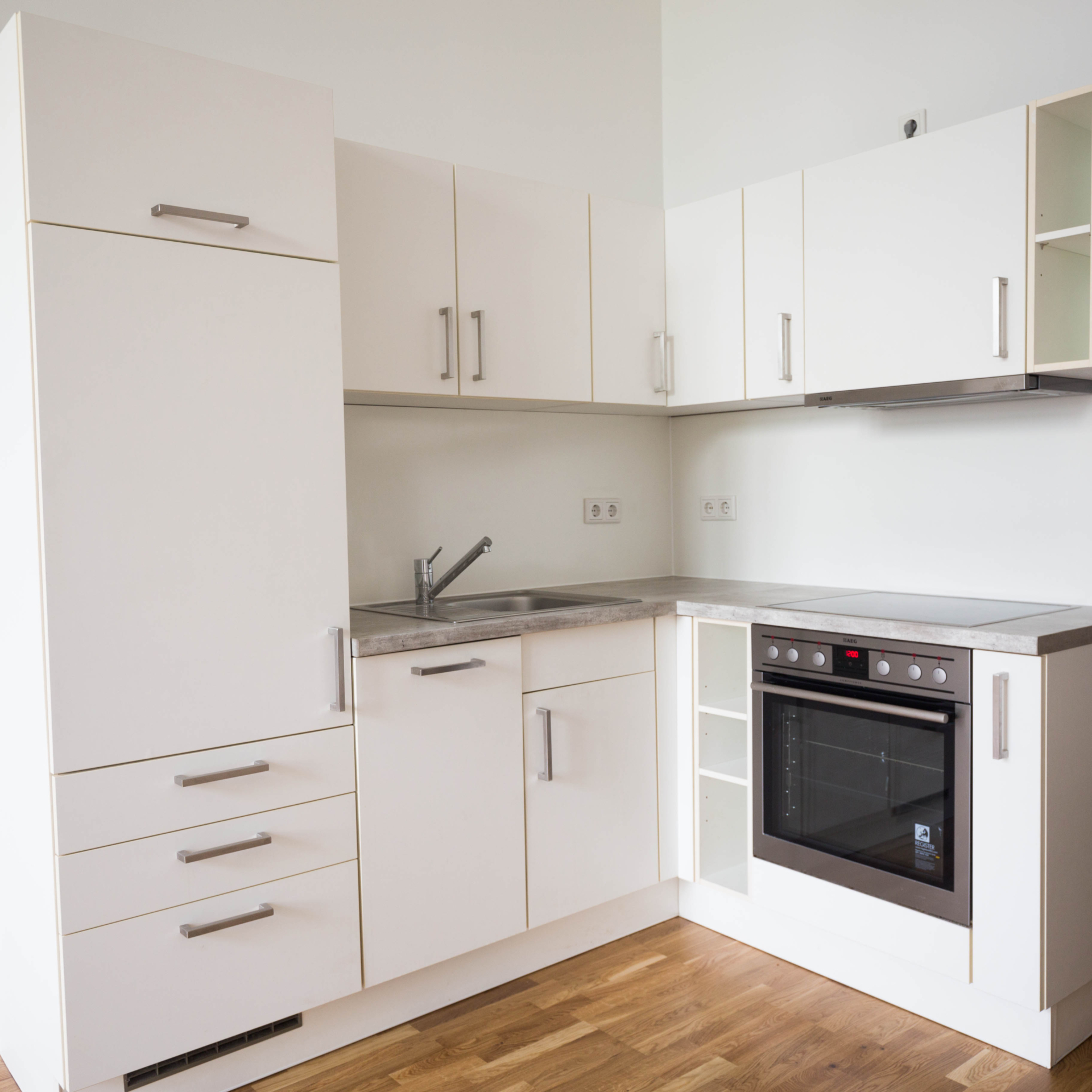 Die offenen Wohn- und Essbereiche sind jeweils mit einer modernen Einbauküche ausgestattet. In den geräumigen Bädern, teilweise mit Badewanne, setzen große Fliesen, verchromte Armaturen und Deckenspots stilvolle Designakzente.