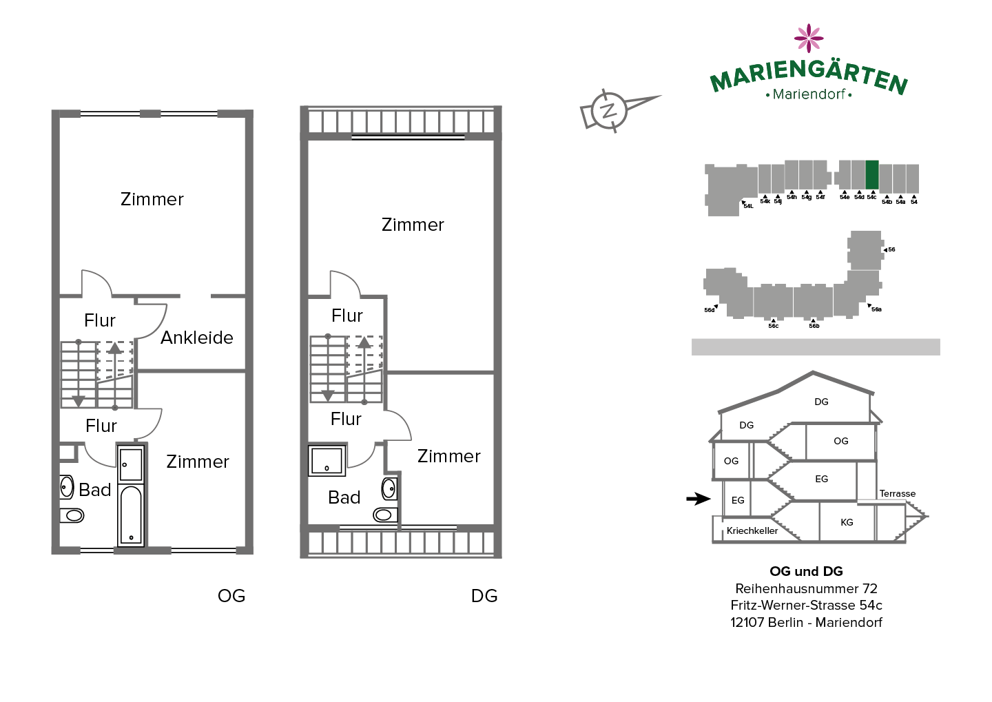 Im Süden Berlins finden Sie einen wahren Schatz – die "Mariengärten". Satte Grünflächen, schöner Baumbestand und blühende Sträucher begrüßen Sie - nur einige Minuten zu Fuß vom U-Bahnhof Alt-Mariendorf. Hier gibt es Platz zum Spielen und Verweilen auf Grünflächen oder am Seerosenteich. Sie werden rasch bemerken: Heimat und Wohnkomfort sind hier Konzept. Gartenflair und relaxte Atmosphäre, verbunden mit den Ansprüchen des urbanen Lebens - Was will man mehr? Das 1989/90 entstandene Quartier in der Fritz-Werner-Straße zeigt, wie es geht: In der angenehmen Nachbarschaft finden sich nicht nur Grundstücke, Kita, Schulen und Supermarkt. Auch Parkflächen und weitere, vielfältige Einkaufsmöglichkeiten erleichtern hier Ihren Alltag. Alles ist schnell erreichbar. Und im rundum begrünten Schutz der Mariengärten bleibt es ruhig und entspannt.