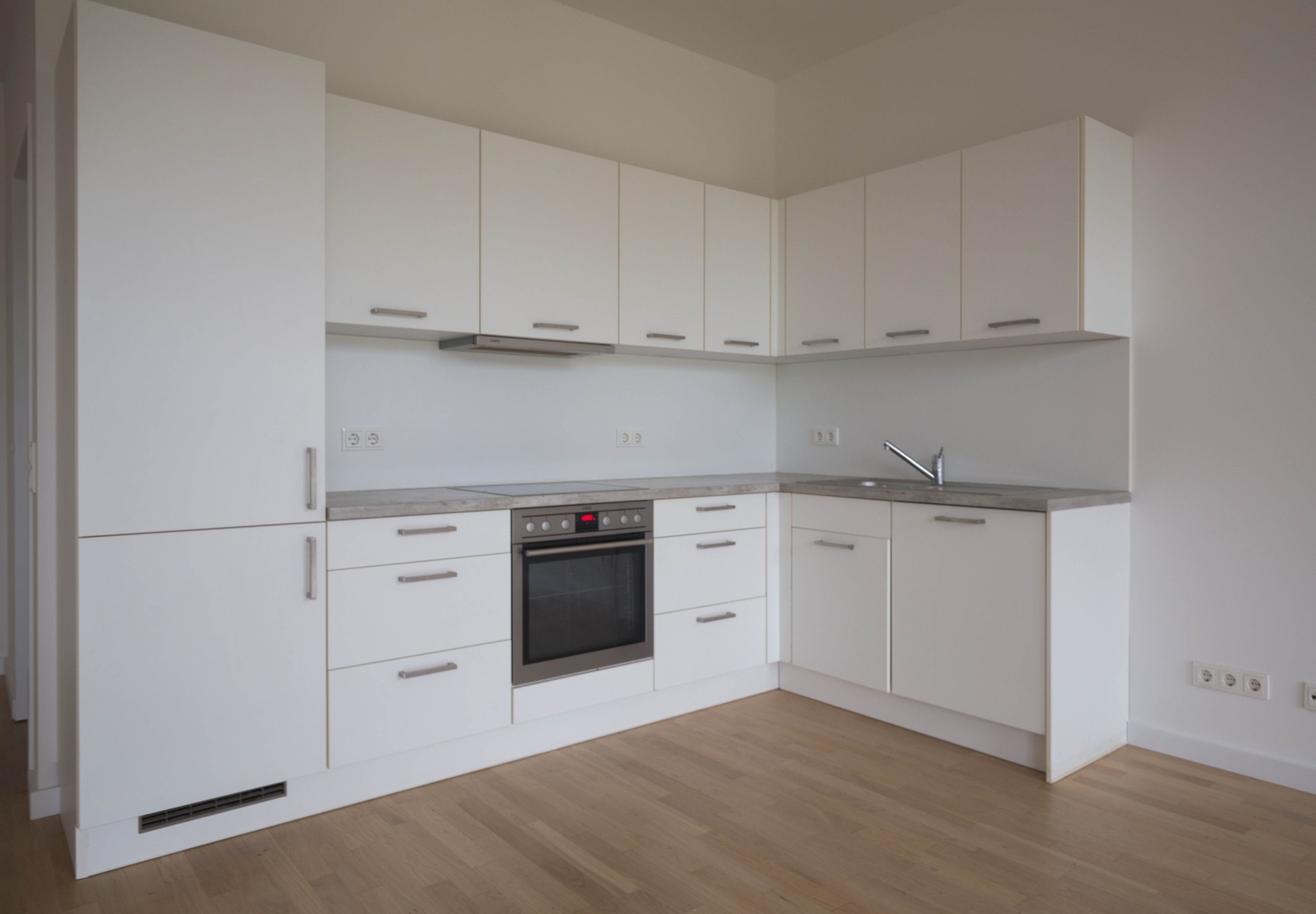 Die offenen Wohn- und Essbereiche sind jeweils mit einer modernen Einbauküche ausgestattet. In den geräumigen Bädern, teilweise mit Badewanne, setzen große Fliesen, verchromte Armaturen und Deckenspots stilvolle Designakzente.