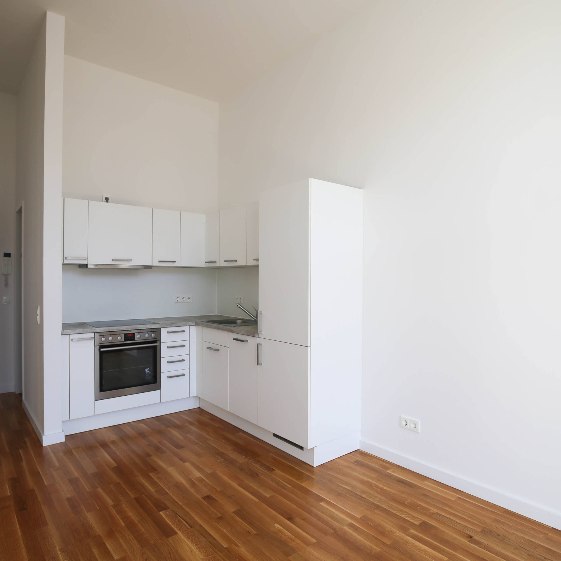 Lichte 3,5 Meter hohe Decken sorgen zusammen mit bodentiefen Fensterfronten für ein weitläufiges und helles Raumgefühl. Hochwertige Parkettböden und Fußbodenheizungen schaffen eine angenehme Wohnatmosphäre und ein optimales Raumklima.