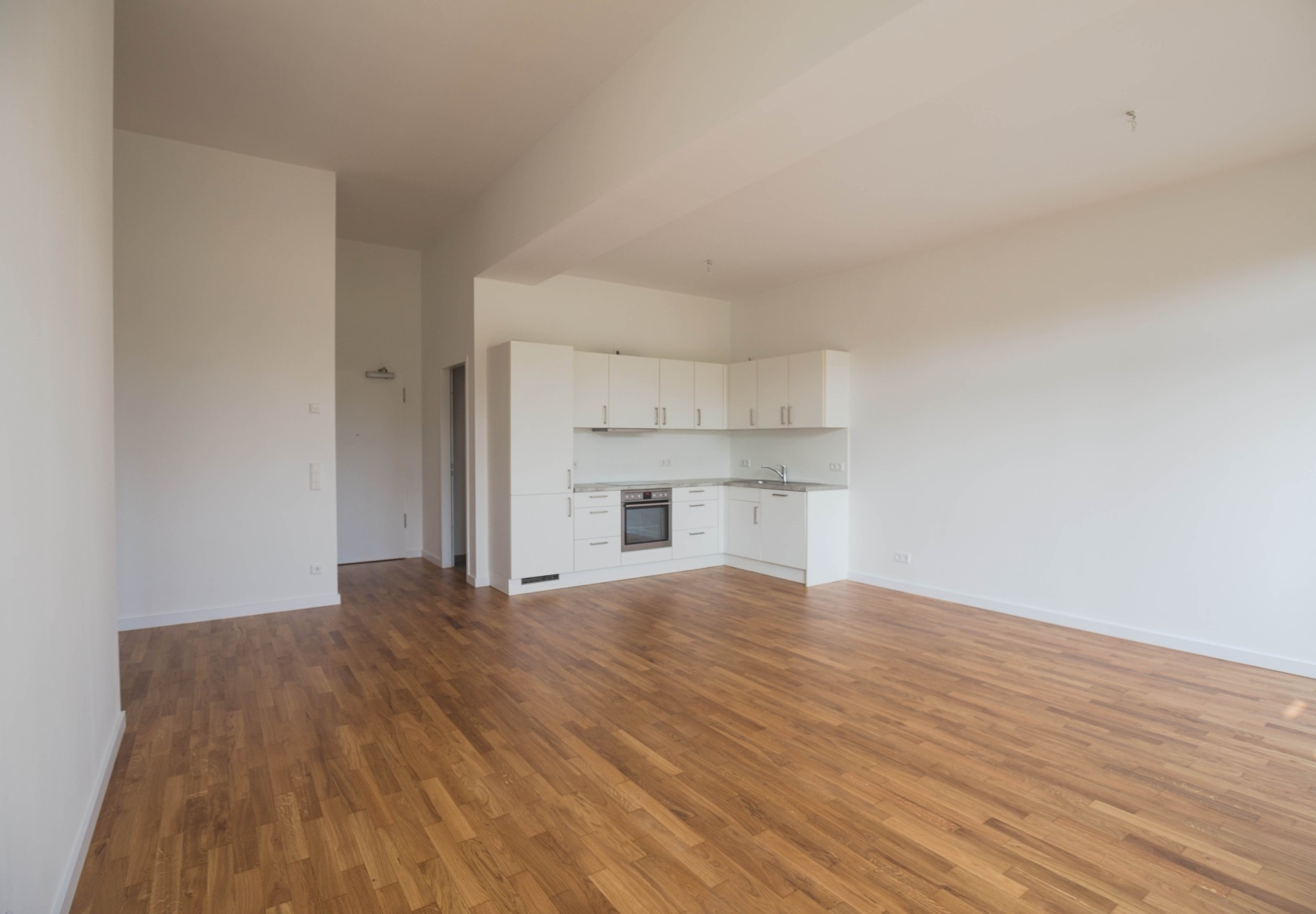 Lichte 3,5 Meter hohe Decken sorgen zusammen mit bodentiefen Fensterfronten für ein weitläufiges und helles Raumgefühl. Hochwertige Parkettböden und Fußbodenheizungen schaffen eine angenehme Wohnatmosphäre und ein optimales Raumklima.