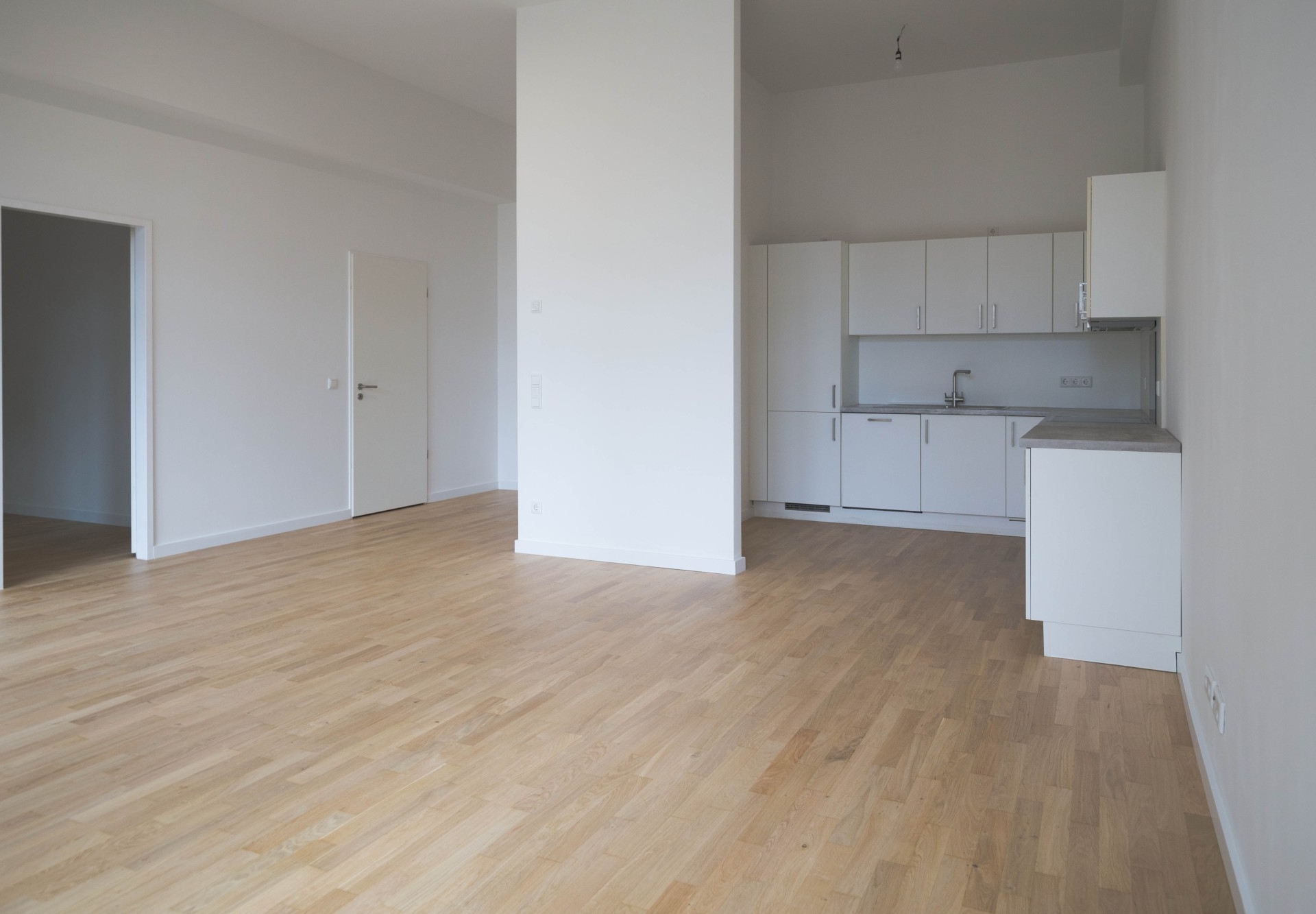 Lichte 3,5 Meter hohe Decken sorgen zusammen mit bodentiefen Fensterfronten für ein weitläufiges und helles Raumgefühl. Hochwertige Parkettböden und Fußbodenheizungen schaffen eine angenehme Wohnatmosphäre und ein optimales Raumklima.